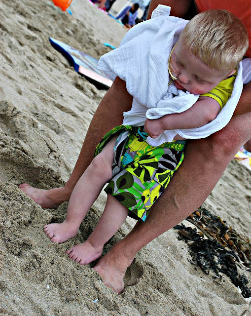 It was kind of an overcast day, but we just enjoyed being on vacation....even with FREEZING cold water!!!